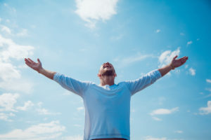 The man held out his hands to the sky. Freedom.